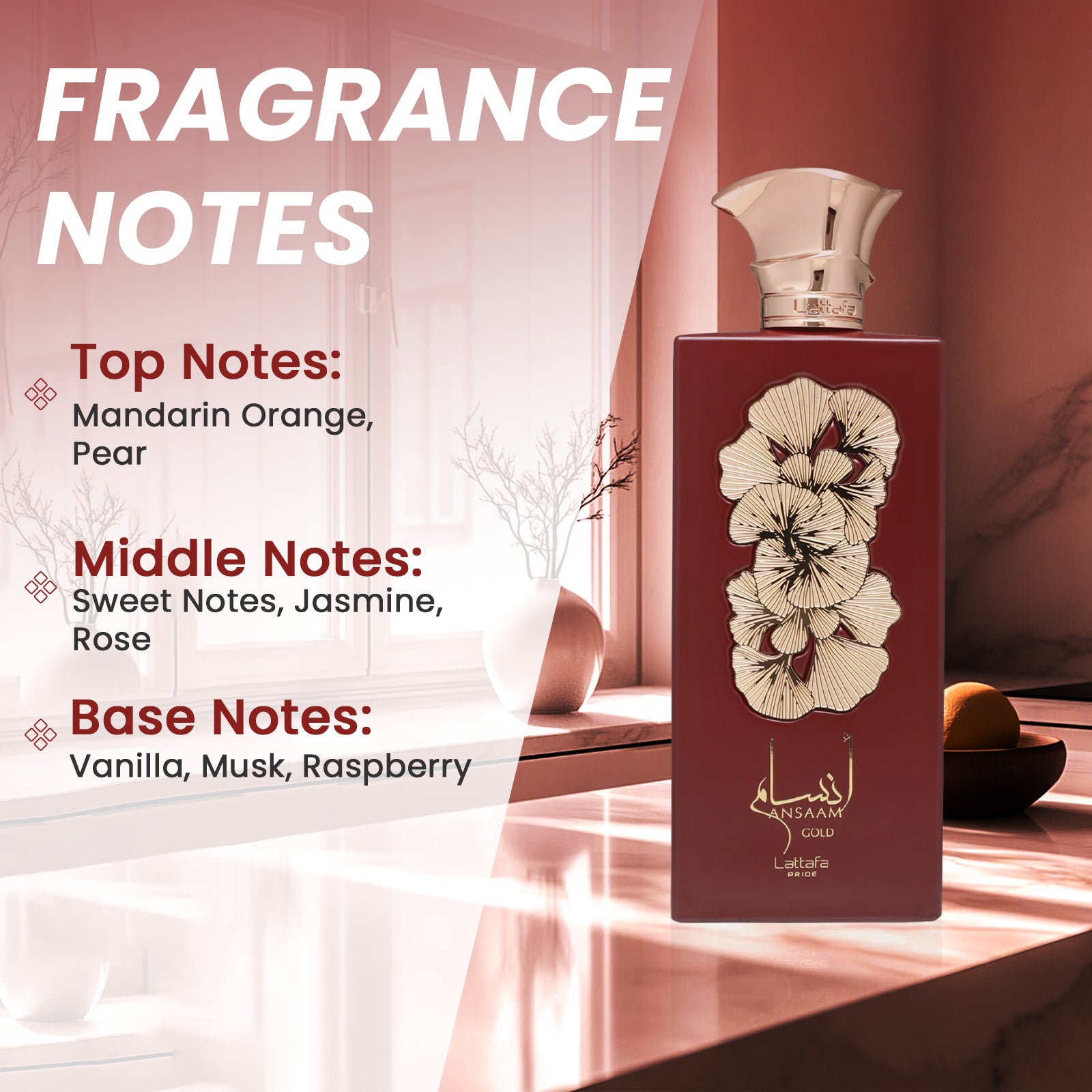 Ansaam Gold is for those who appreciate a refined sweetness — vibrant, elegant, and effortlessly charming. It’s a scent that uplifts your mood and leaves a lasting impression.