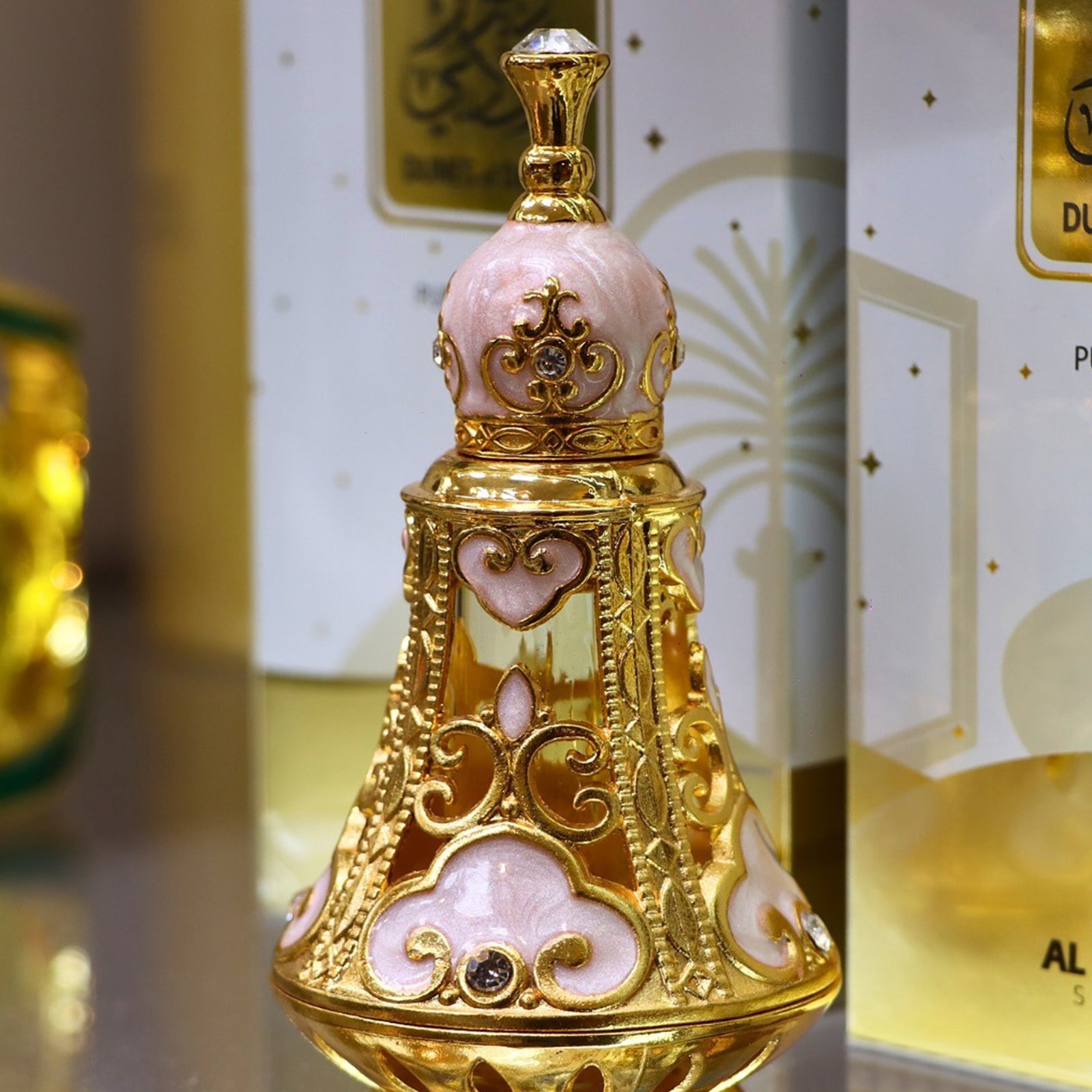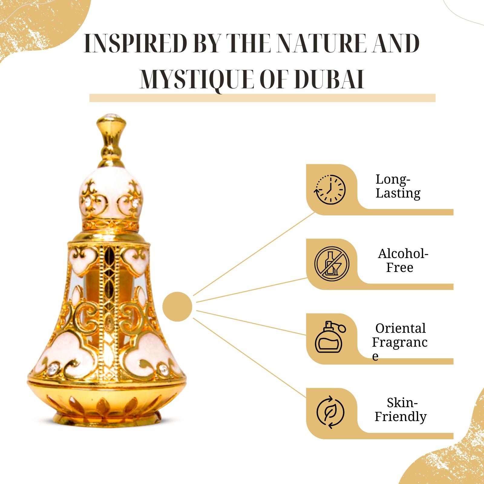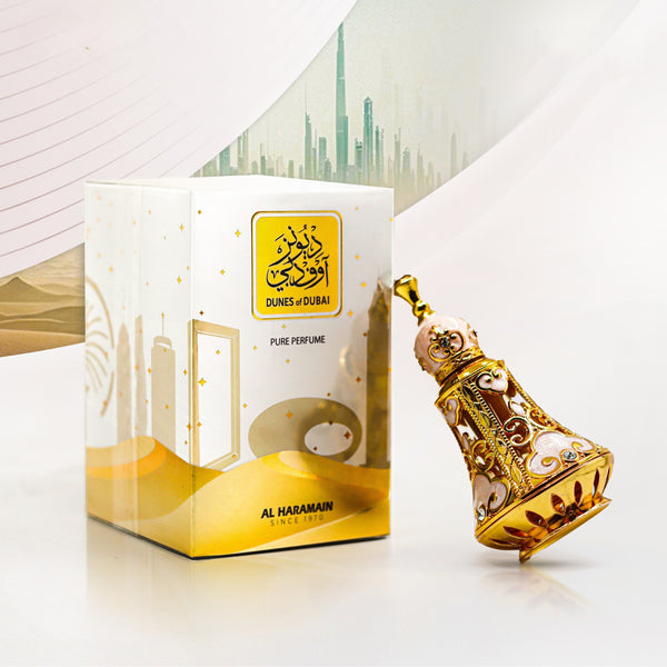 Experience the golden essence of the Emirates with Dunes of Dubai Attar Oil, a luxurious non-alcoholic perfume oil crafted by Al Haramain. This scent opens with fruity warmth, softens into a lush floral heart, and settles into a deep, woody base — creating an unforgettable and long-lasting aroma. Perfect for both men and women, this attar is a timeless expression of elegance and sophistication.