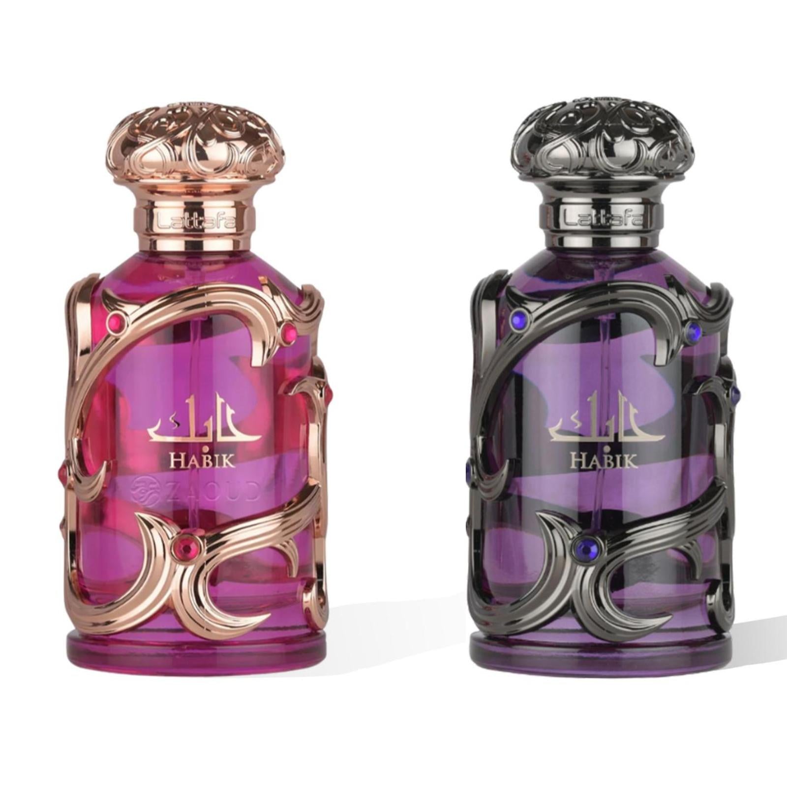 The Habik Duo by Lattafa brings together two refined Eau de Parfums crafted for men and women.