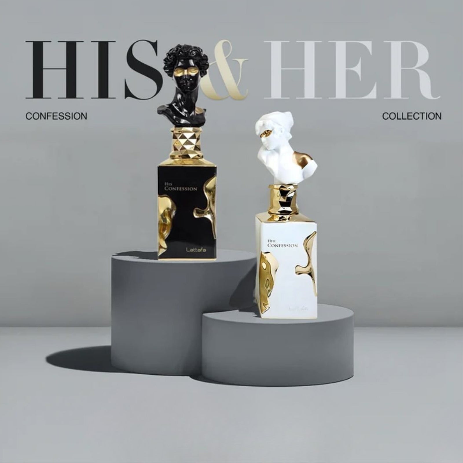 His & Her Confession reflects balance — power and grace, strength and sensuality. Designed for those who appreciate the art of perfumery and the beauty of shared moments, it’s a duo that speaks of connection, allure, and individuality.