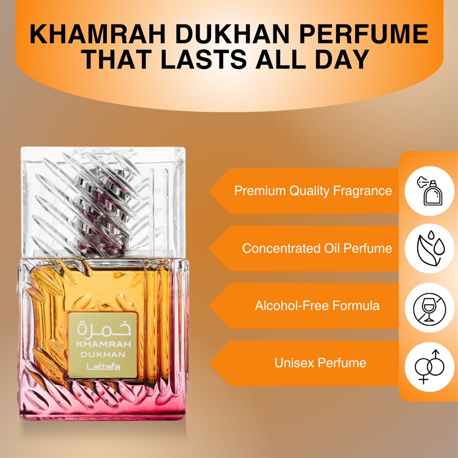 Khamrah Dukhan is a powerful statement in a bottle—an extrait-inspired unisex fragrance that fuses smoky citrus with warm spices and deep amber woods. From the very first spray, it commands attention with its bold opening of smoked mandarin and fiery pimento. As it evolves, rich woody notes and clove deliver intensity, while the base of amber and musk leaves a hypnotic, long-lasting trail. Perfect for evenings, cooler months, or as a standout gift for Easter, anniversaries, or birthdays.