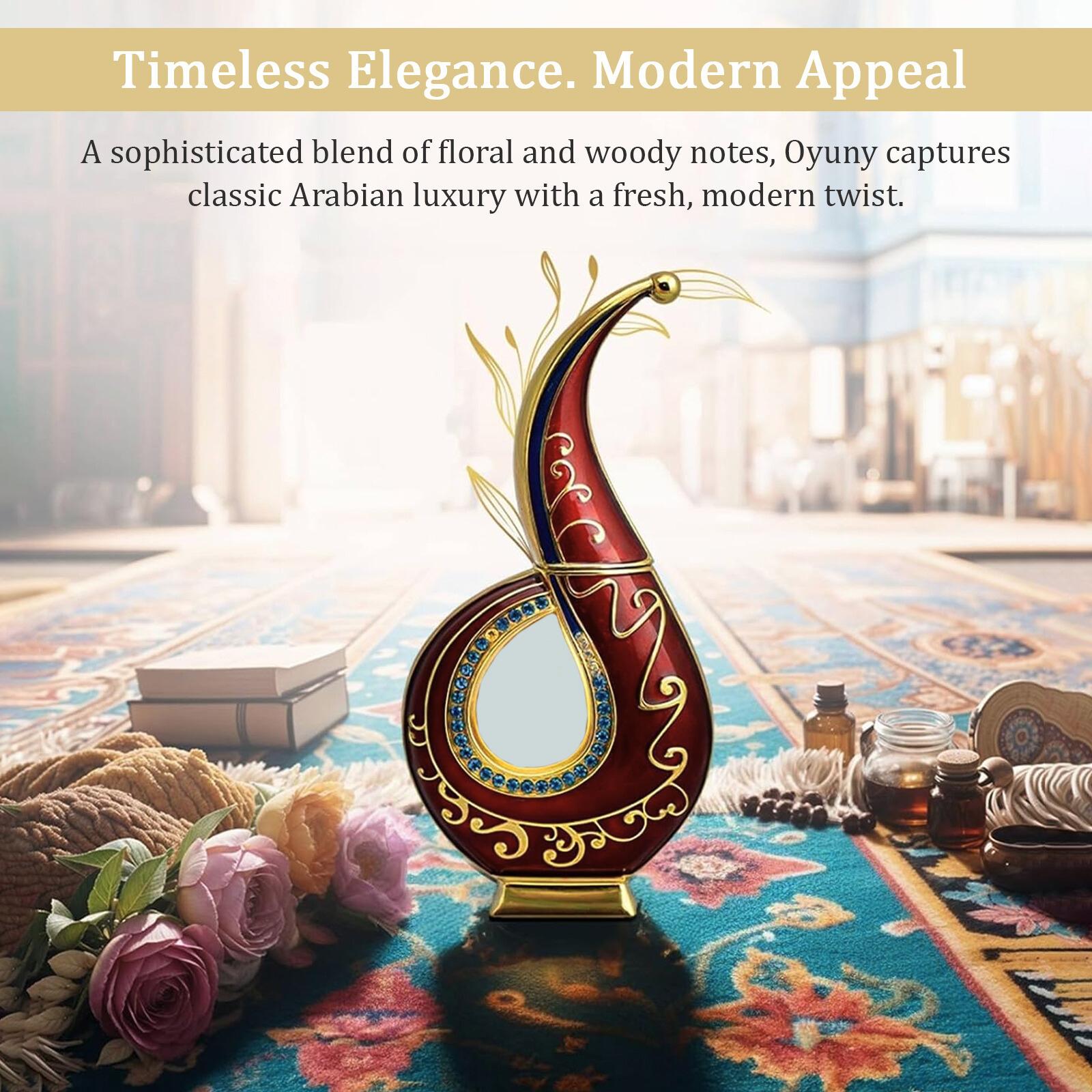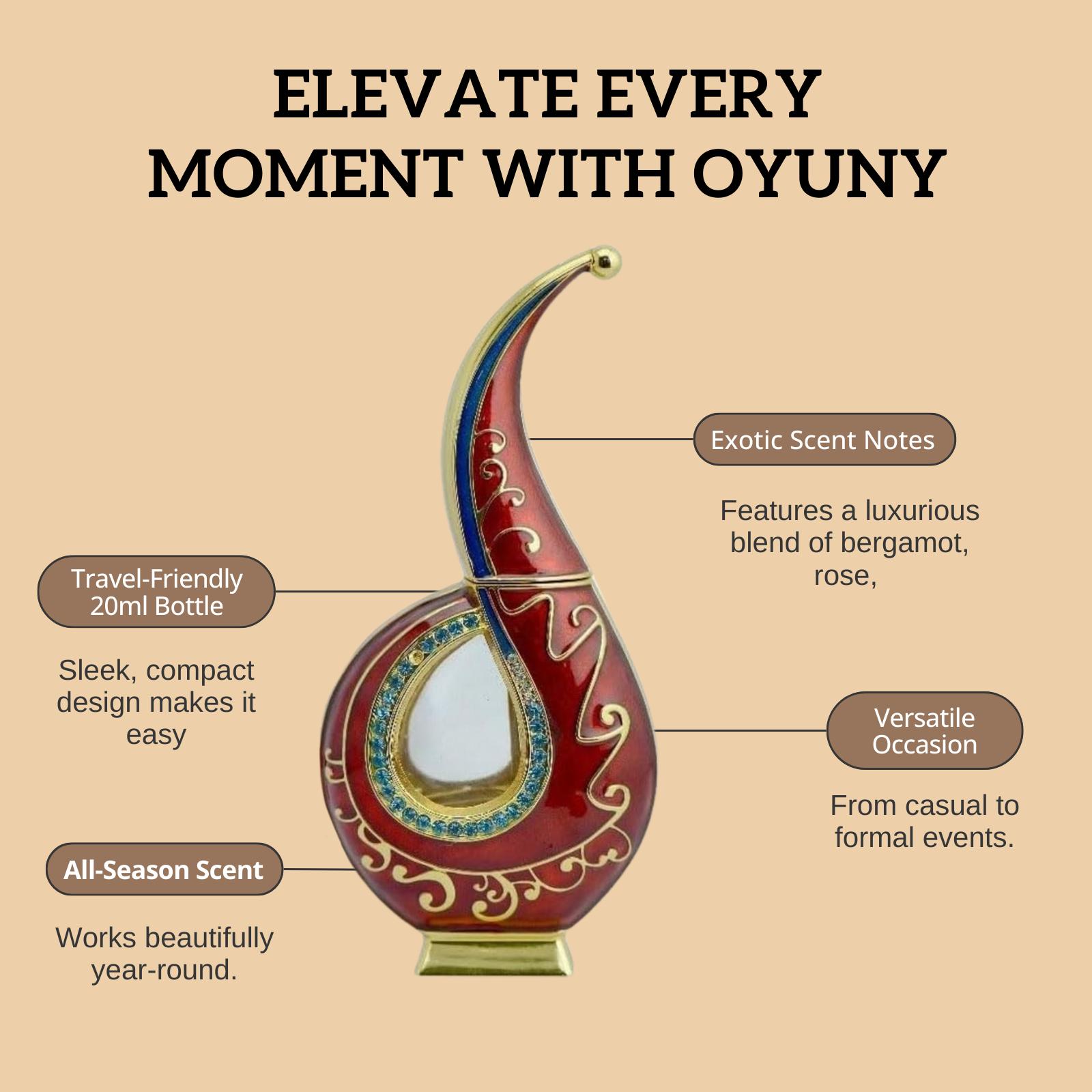 Oyuny Perfume Oil is a delightful unisex fragrance that combines fruity, floral, and warm notes, making it a perfect companion for everyday elegance. Opening with fresh bursts of rose, pineapple, and bergamot, it offers a radiant, uplifting start. The heart notes of apple, peach, and freesia add a sweet, floral richness, while the base of patchouli, tobac, and gourmand notes provides a sensual, earthy finish. This perfume oil is designed to captivate and leave a lasting impression, whether you're enjoying a summer day or attending a special occasion.