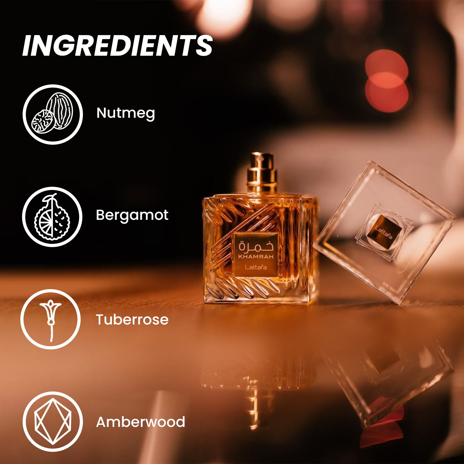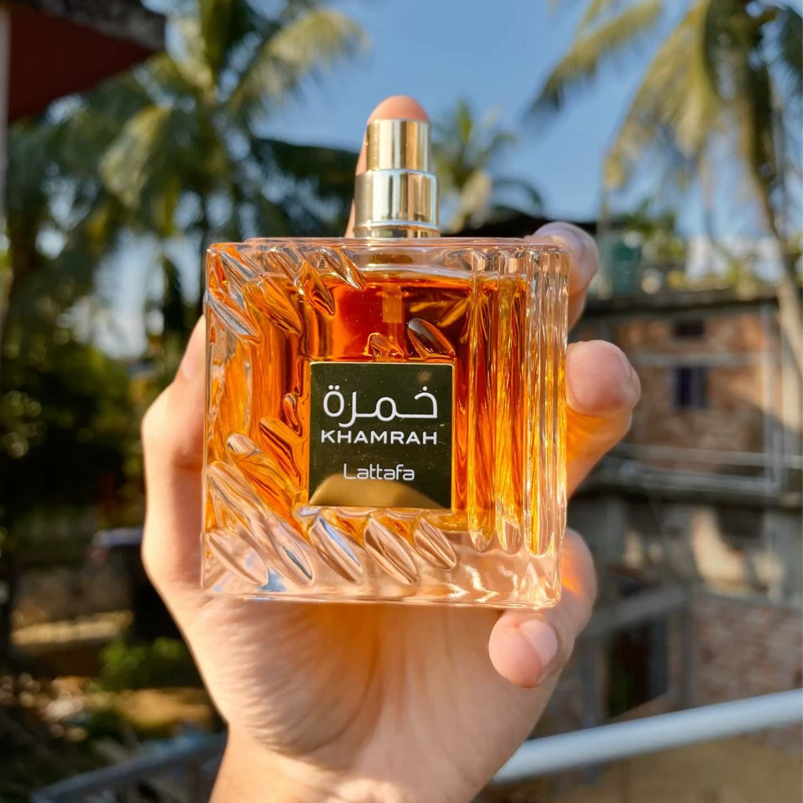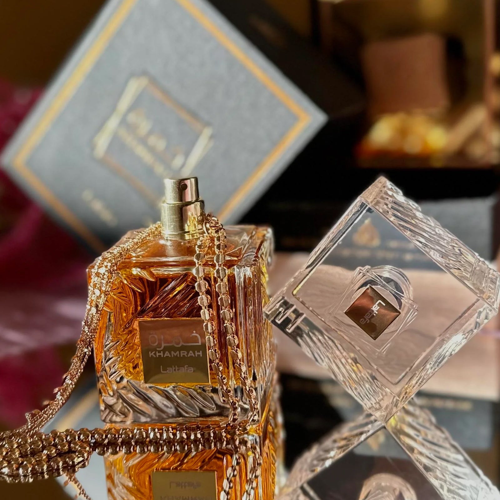 Discover the captivating allure of Perfumes Khamrah, a luxurious unisex Eau de Perfume available in 3.4oz (100ml). This premium Arabian fragrance blends warm spices, sweet vanilla, and woody undertones, creating a long-lasting and sophisticated scent for both men and women. Perfect for all occasions, Khamrah exudes elegance and charm, making it a TikTok favorite for those seeking a standout signature scent. Whether for daily wear or a thoughtful gift, this bold and enticing perfume ensures you'll leave a lasting impression.