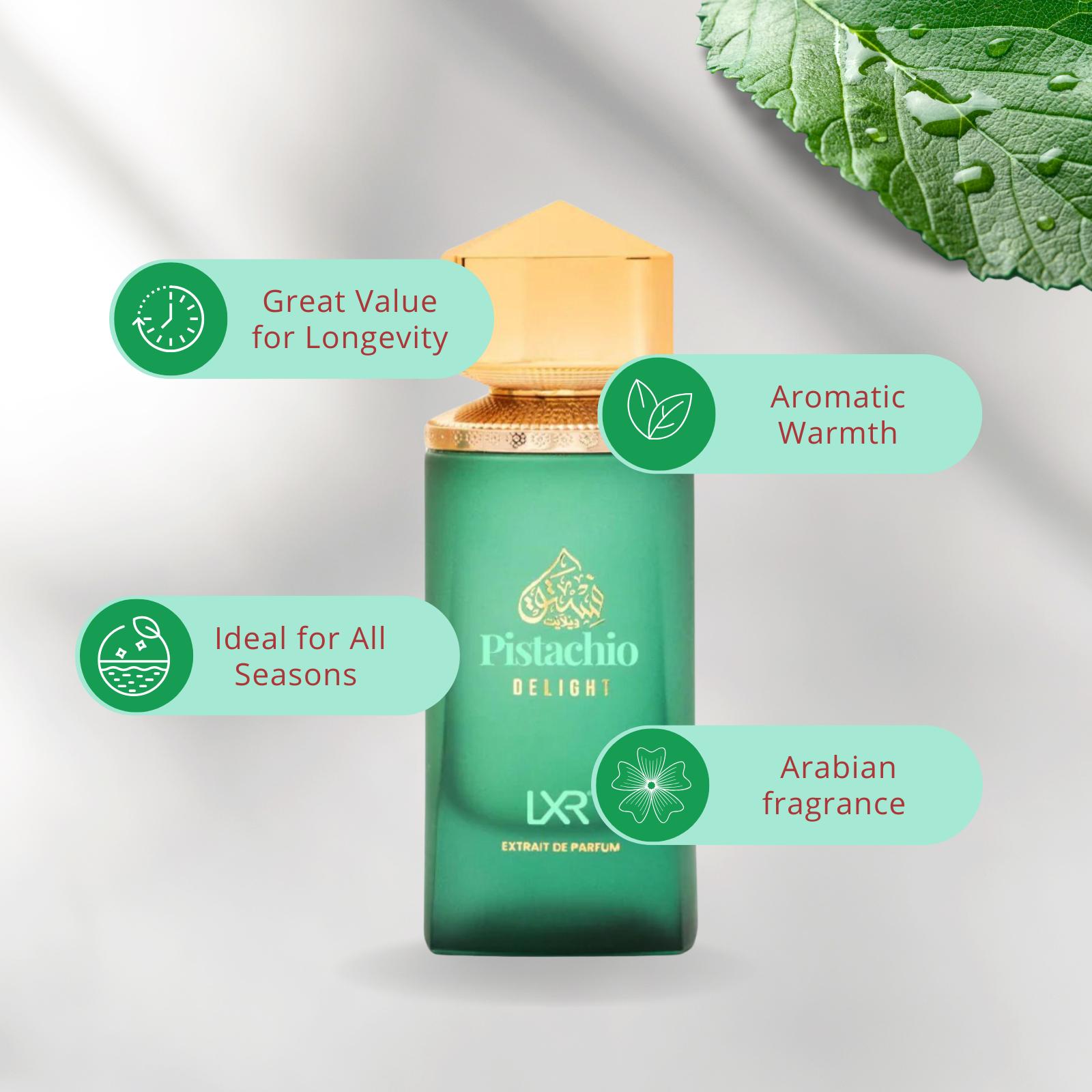 Indulge in the sweet and nutty aroma of Pistachio Delight Extrait de Parfum, a premium Arabian fragrance that brings a unique blend of pistachio, sweet notes, and aromatic warmth. This luxurious perfume is crafted to provide a long-lasting and captivating scent, ideal for both everyday wear and special occasions. Whether you're celebrating an Anniversary, Birthday, or Easter, Pistachio Delight is the perfect gift for loved ones. Its unique blend and elegant design make it an unforgettable addition to any fragrance collection.