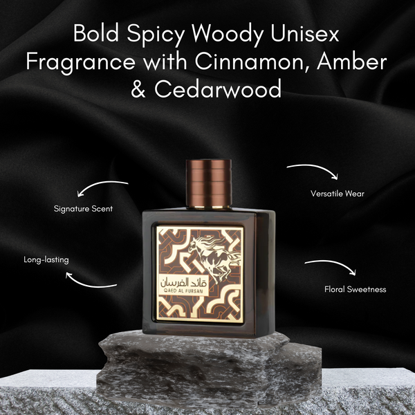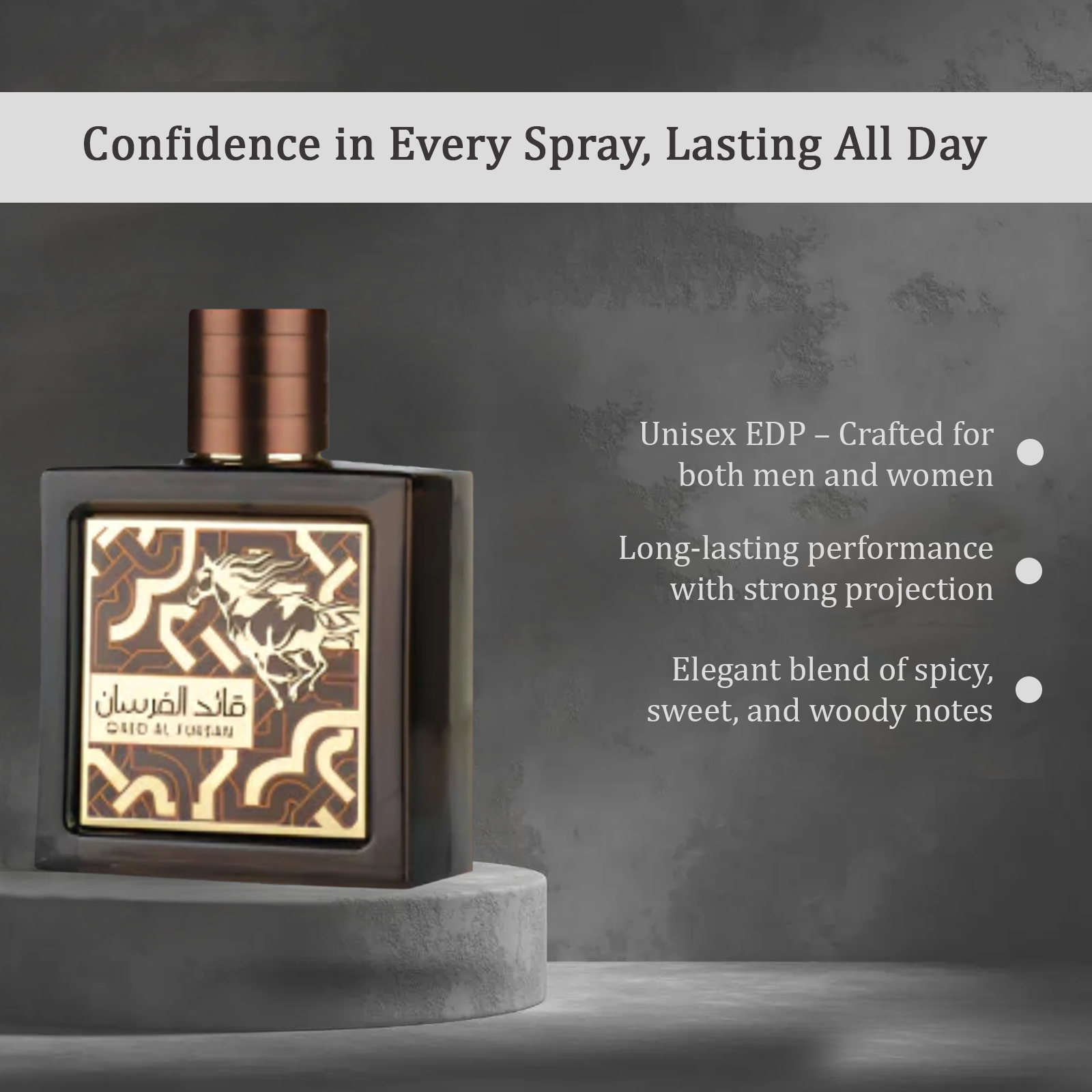 Unleash your wild elegance with Qaed Al Fursan Untamed Eau De Perfume, a daring unisex scent that captures the essence of strength, charm, and mystery. Launched in 2025, this woody spicy fragrance is a layered journey of confidence that speaks volumes without a word.