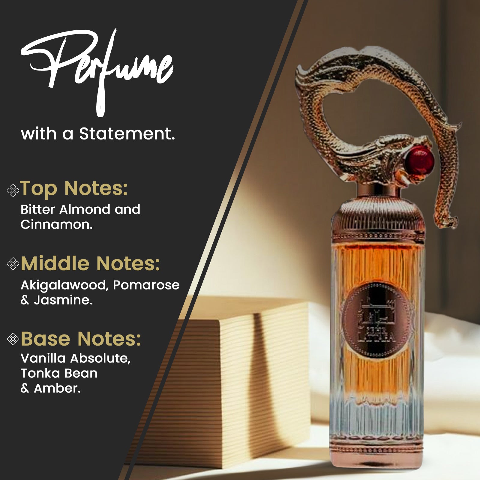 Discover the captivating essence of DXB SEHR LATTAFA Eau de Parfum, a luxurious 100ml fragrance expertly crafted for those who crave a warm, spicy, and sweet scent experience. This exquisite perfume opens with invigorating top notes of bitter almond and cinnamon, setting the stage for an inviting aroma that awakens your senses.